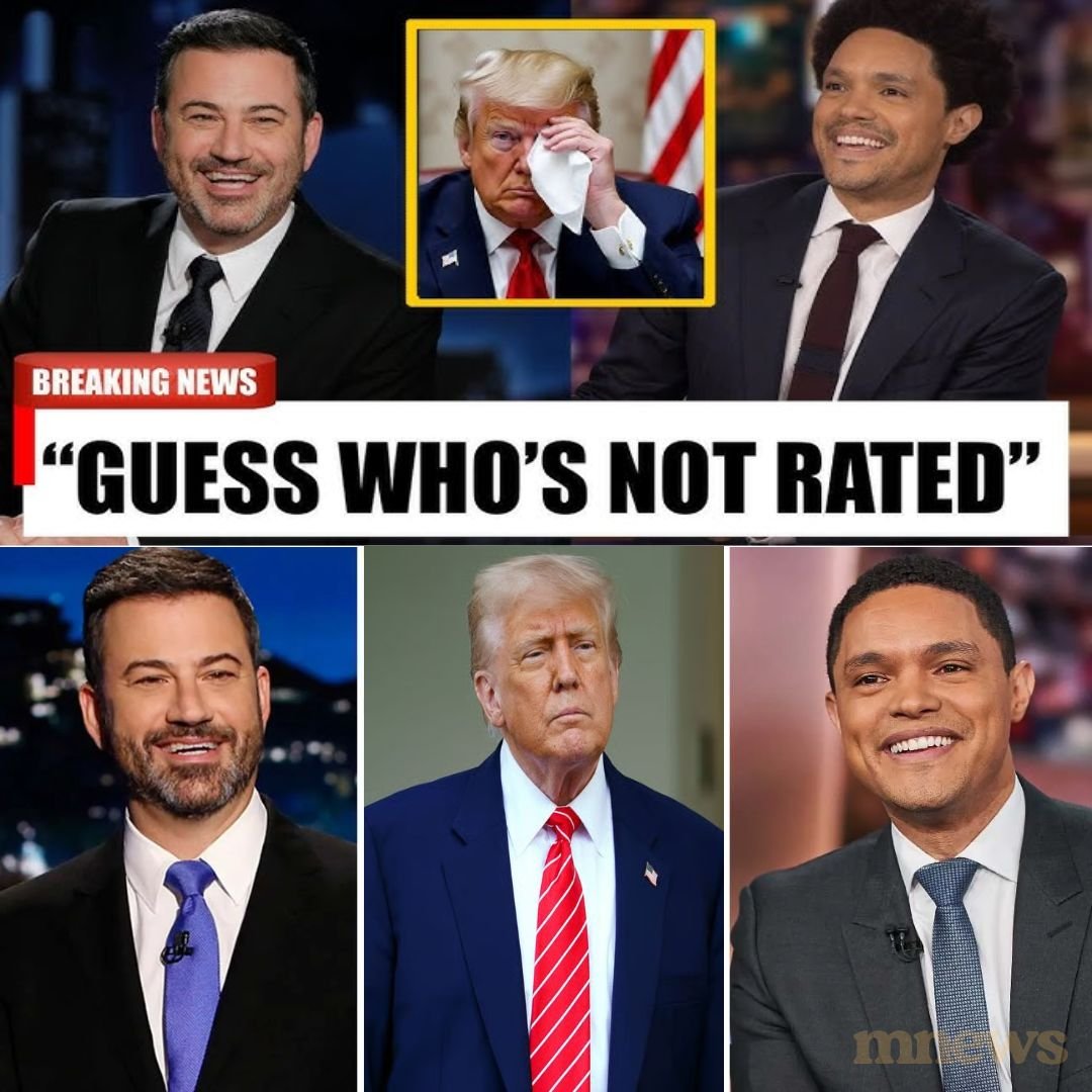 In a scathing display of late-night comedy, Jimmy Kimmel and Trevor Noah took aim at Donald Trump’s dwindling approval ratings, delivering a masterclass in political satire that left the former president’s bravado in tatters. The comedians, known for their sharp wit, dissected Trump’s obsession with media attention, exposing the fragile ego behind his bombastic persona.