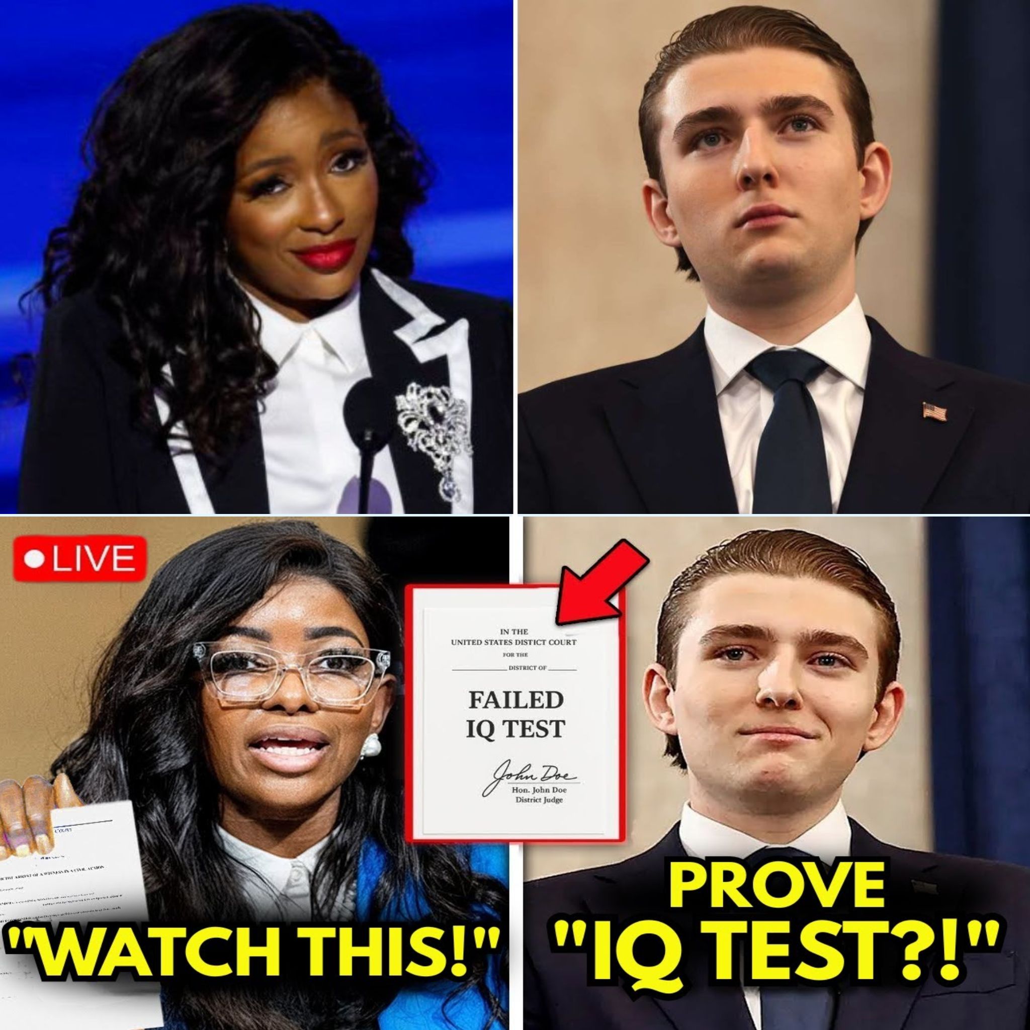 In a stunning display of wit and composure, Jasmine Crockett outmaneuvered Barron Trump during a heated exchange at a youth leadership panel, leaving the audience in awe and igniting a viral sensation online. The exchange, which began when Barron challenged Crockett to an IQ test, quickly escalated into a battle of intellect and experience that culminated in a moment that would define the evening.