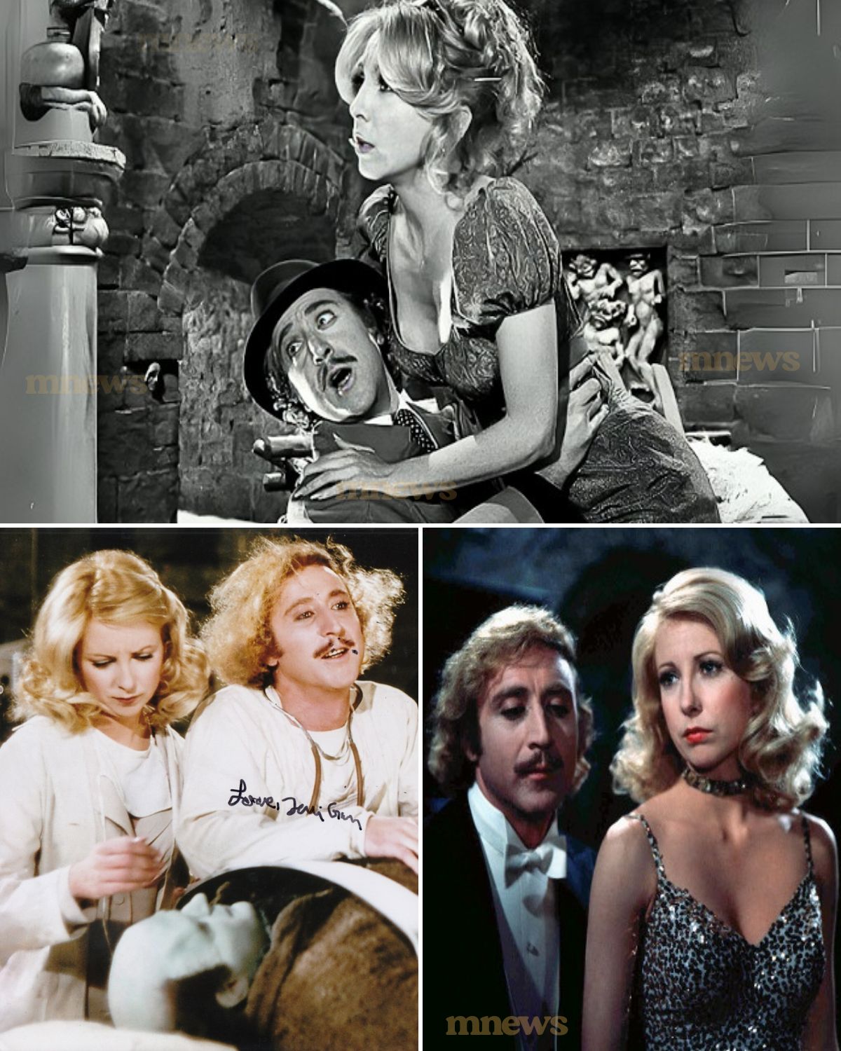 At first glance, it looks like a simple behind-the-scenes photo from Young Frankenstein — Gene Wilder’s intense stare, Marty Feldman’s mischievous grin, and that classic Gothic lab backdrop. But if you look closer