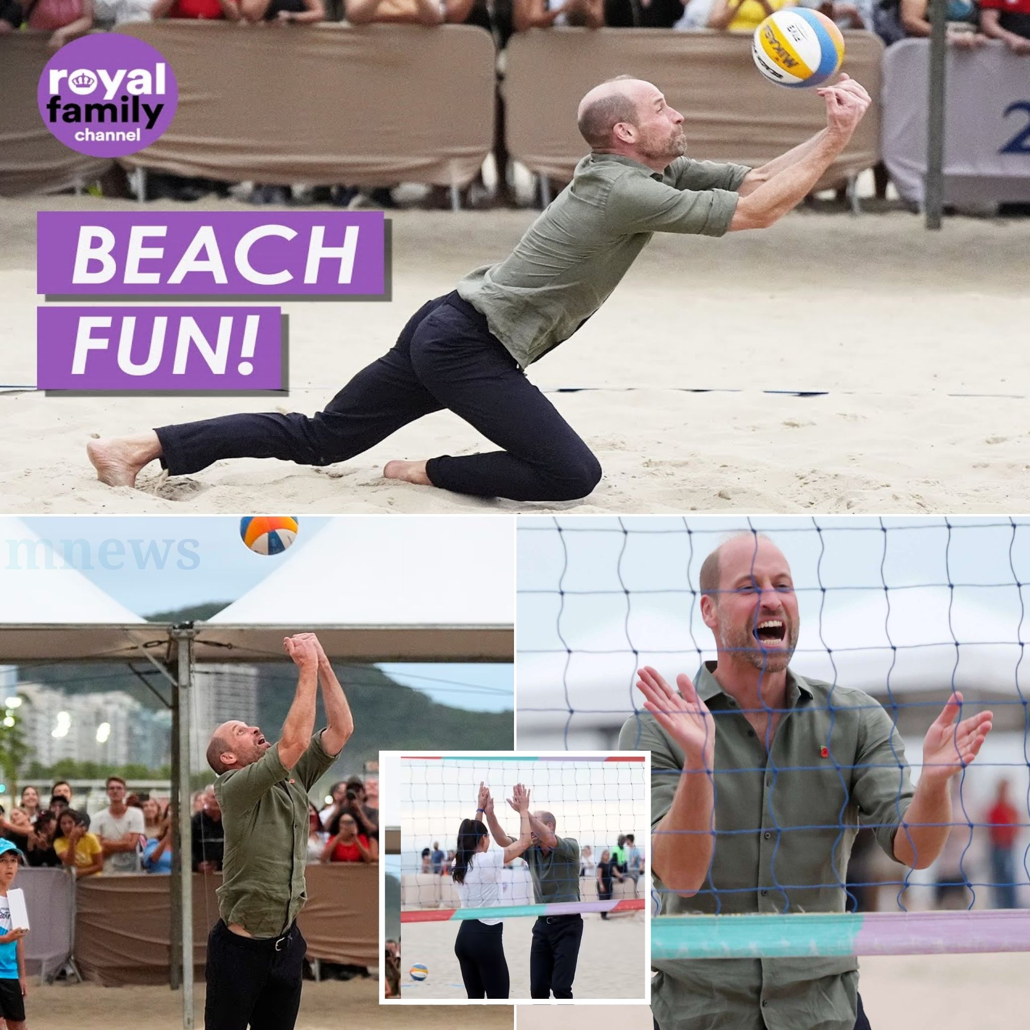 From there, William plunged straight into action. At the world-famous Copacabana Beach, the heir to the throne joined Olympic volleyball star Carolina Solberg and students from her Levante Institute — a sports initiative helping underprivileged youth.